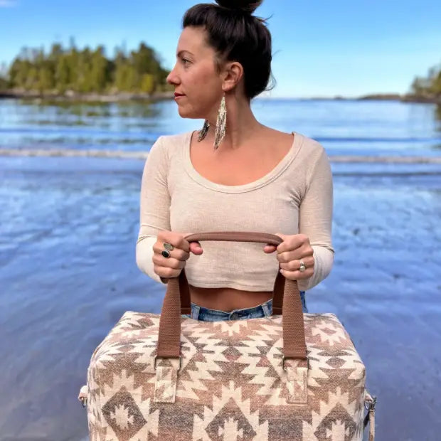 Perfect for all your adventures, The Getaway Duffel is a must-have for any traveler. With an outside zipper closure and a small interior pocket, this bag keeps your essentials secure. The adjustable strap and hand-held straps make it easy to carry, while the washable nylon lining adds convenience. Its compact yet spacious design makes it the ideal travel companion. Approx. 19"x9"x10".
